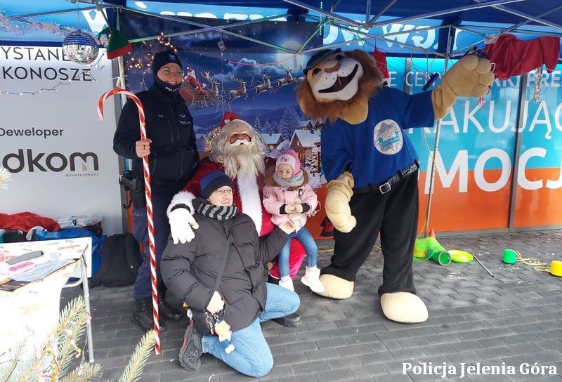Dzielnicowi z Komisariatu Policji w Karpaczu pojawili się z policyjną maskotką Komisarzem Lwem, który przyciągał uwagę dzieci i pozował do wspólnych zdjęć. Funkcjonariusze prezentowali radiowóz, opowiadali o codziennej służbie i przypominali zasady bezpiecznej zabawy. Spotkanie odbyło się pod nowo otwartą galerią handlową, gdzie zorganizowano animacje i gry. Wieczorem policjanci wzięli udział w rozświetleniu miejskiej choinki.