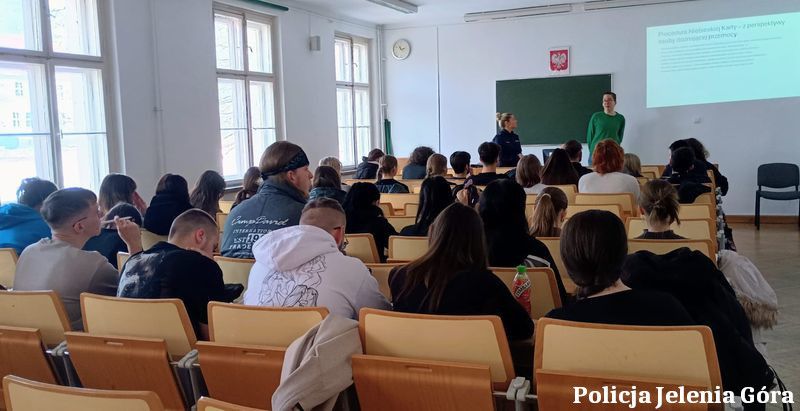 4 grudnia 2025 roku w ramach współpracy jeleniogórskiej Policji z Karkonoską Akademią Nauk Stosowanych funkcjonariuszka Komendy Miejskiej Policji w Jeleniej Górze spotkała się ze studentami kierunku Psychologia. Tematem przewodnim była rekrutacja do służby oraz specyfika pracy policjanta.