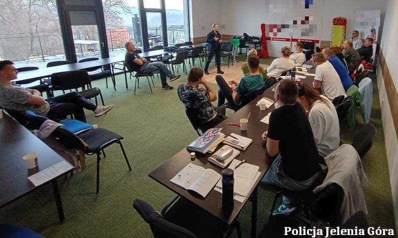 Podczas szkolenia z zakresu udzielania pierwszej pomocy funkcjonariuszka Komendy Miejskiej Policji w Jeleniej Górze przedstawiła uczestnikom zasady naboru do służby oraz ofertę, jaką Policja kieruje do kandydatów. Omówiono przebieg rekrutacji, strukturę organizacyjną oraz wymagania, jakie musi spełnić osoba aplikująca.