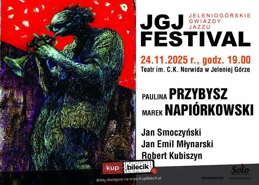 Wyjątkowe wydarzenie muzycznego, które od lat promuje twórczość Marka Napiórkowskiego i Artura Lesickiego, wybitnych artystów związanych z Jelenią Górą, którzy mimo międzynarodowych sukcesów, pozostają silnie związani z rodzinnym miastem. Festiwal to niepowtarzalna okazja, aby usłyszeć ich wirtuozerię na żywo w wyjątkowych koncertach. Na scenie wystąpią także zaproszeni przez nich goście, czyniąc JGJ FESTIVAL muzycznym świętem na najwyższym poziomie.